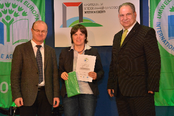 Hilpoltstein, 04.12.2015 – In der letzten von drei Auszeichnungsveranstaltungen überreichte Dr. Christoph Goppel in Vertretung der Bayerischen Umweltministerin Ulrike Scharf den erfolgreichen Schulen die Auszeichnung „Umweltschule in Europa / Internationale Agenda 21-Schule für das Schuljahr 2014/15“ im Gymnasium Steigerwald-Landschulheim in Wiesentheid.