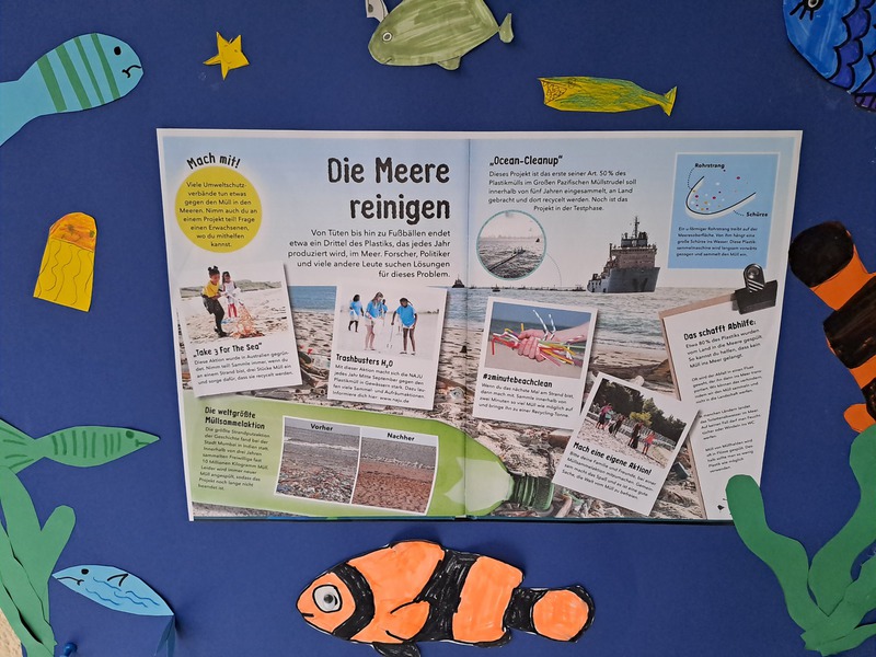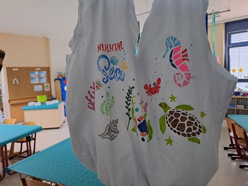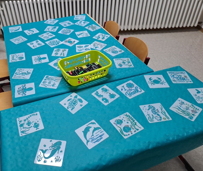 Besonders gut gefallen hat den Kindern ein Bilderbuch, in dem Herr Krake das Meer aufräumt. Sie haben gespannt zugehört. In einer tollen Bastelaktion konnten die Schüler dann auch noch aus alten T-Shirts auf einfache und kreative Weise Tragetaschen herstellen. Der Ablauf war ganz unkompliziert: Zuerst wurden die T-Shirts eingeschnitten, um die gewünschte Form für die Tasche zu erhalten. Anschließend wurden die Schnittstellen verknotet, um die Tasche zu fixieren und ihr Stabilität zu verleihen. Wer wollte, konnte mit Hilfe von Schablonen seine Tasche auch noch mit Meeresmotiven verschönern.