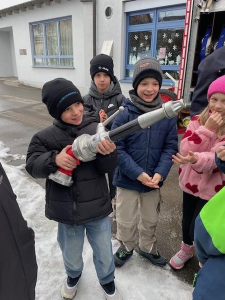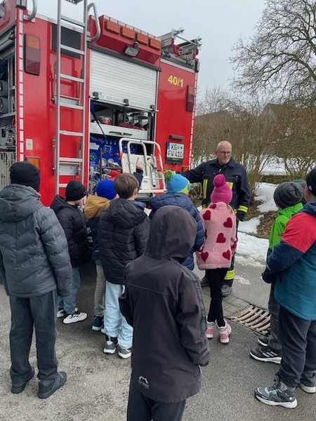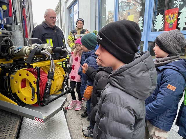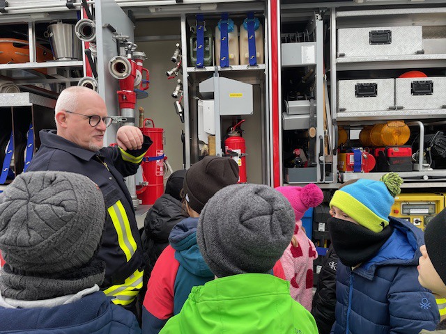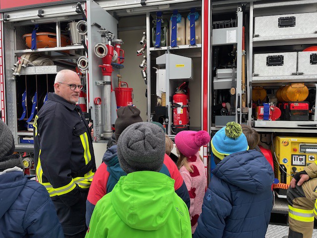 Das Highlight war die Sichtung des Feuerwehrfahrzeugs und die abschließende Fahrt im selbigen. Für ihre lobenswerte und engagierte Mitarbeit wurde jedes Kind mit kleinen Geschenken belohnt.