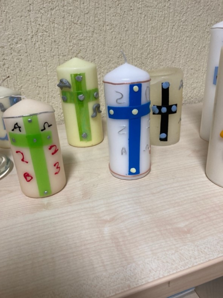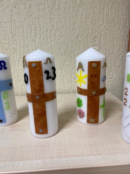 Vor den Osterferien, am 31.03.2023 bastelten wir alle Osterkerzen für den Ostersonntagstisch und waren sehr stolz auf unsere Ergebnisse.