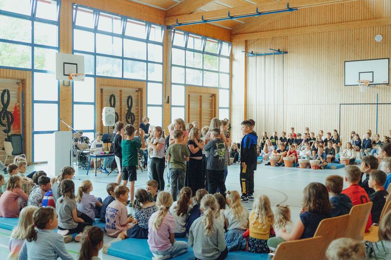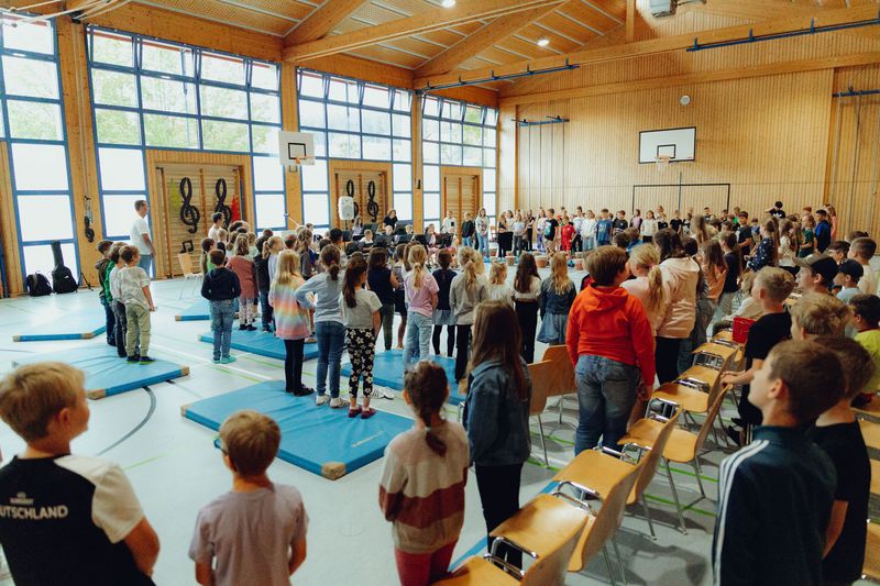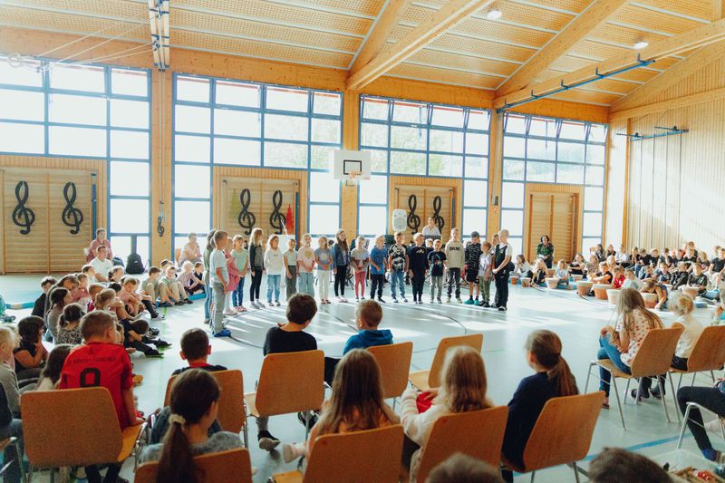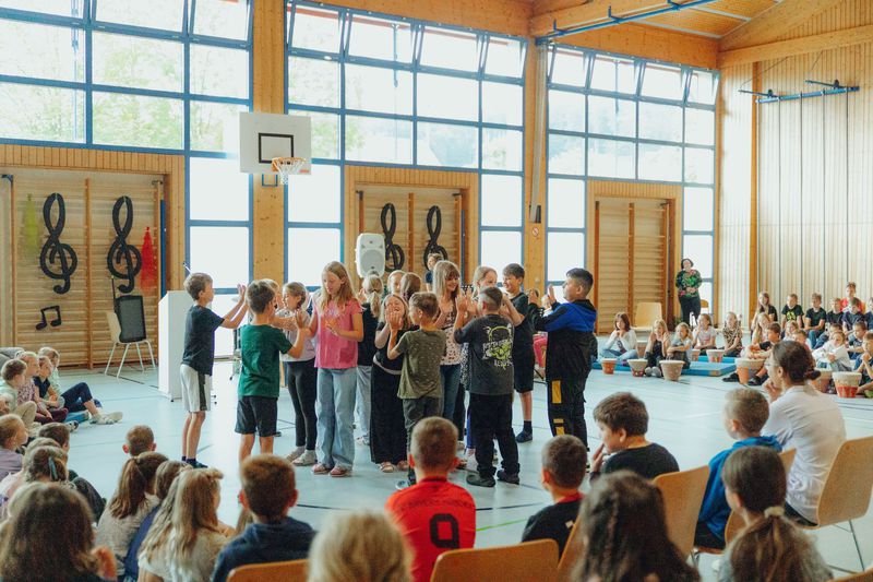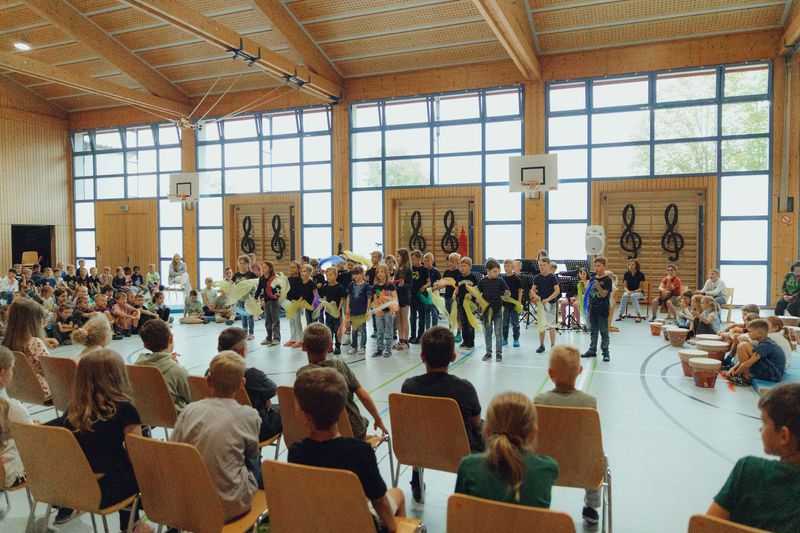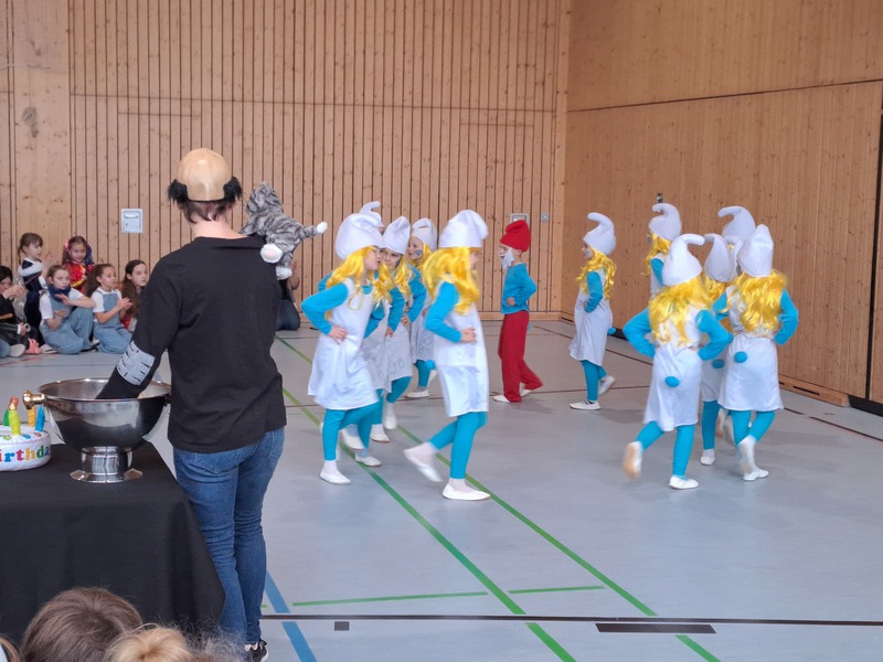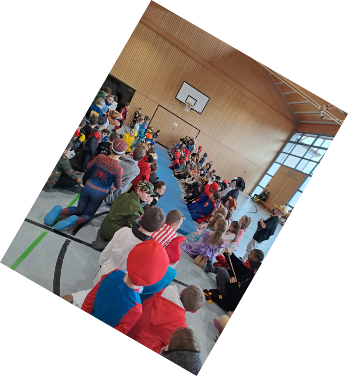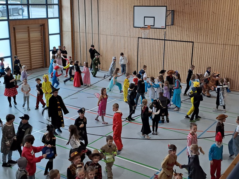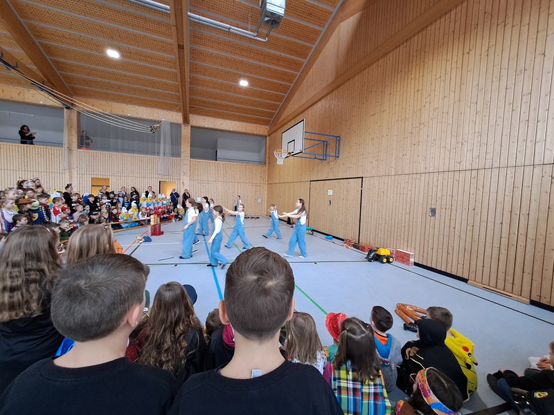 Nachdem alle Klassen mit einer Polonaise aus ihren Klassenzimmern abgeholt wurden, wurde es in der Turnhalle bunt.