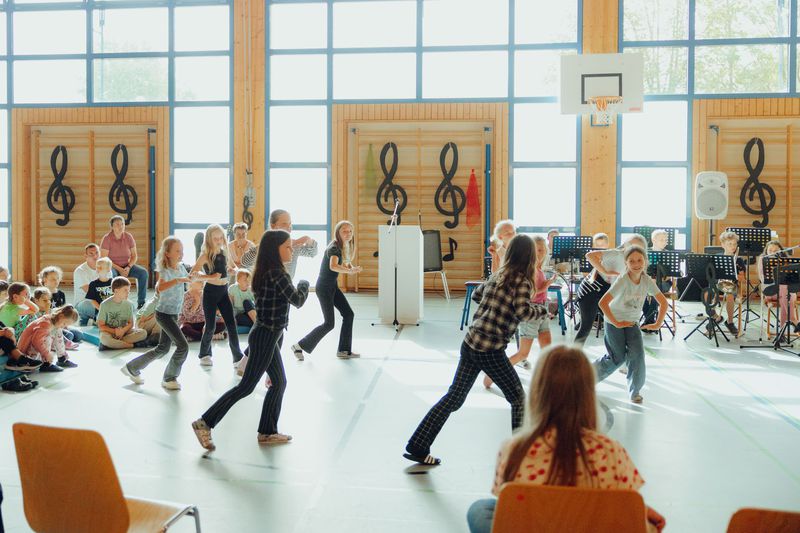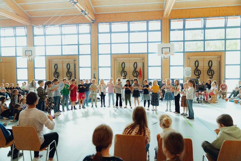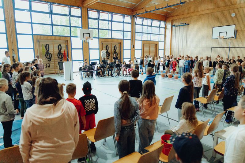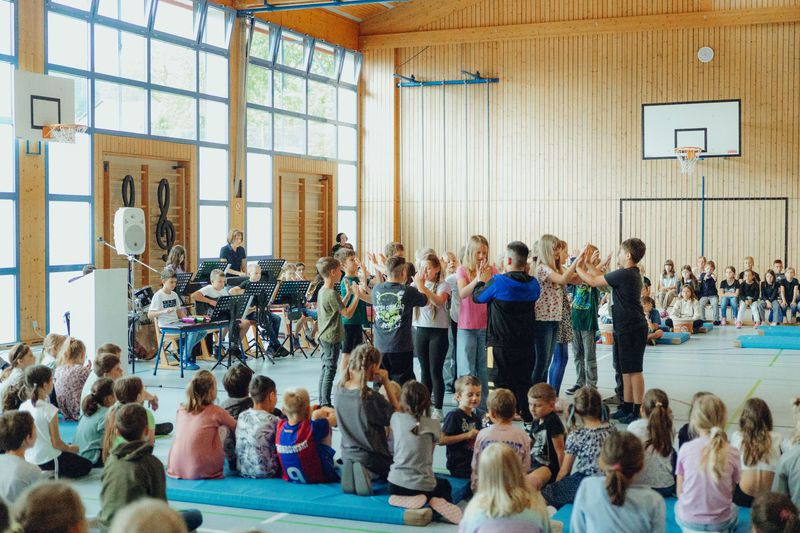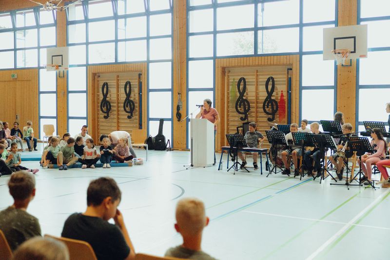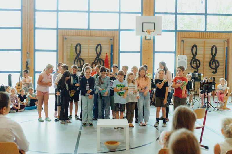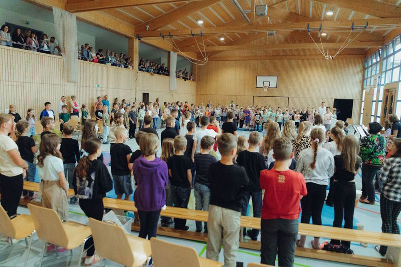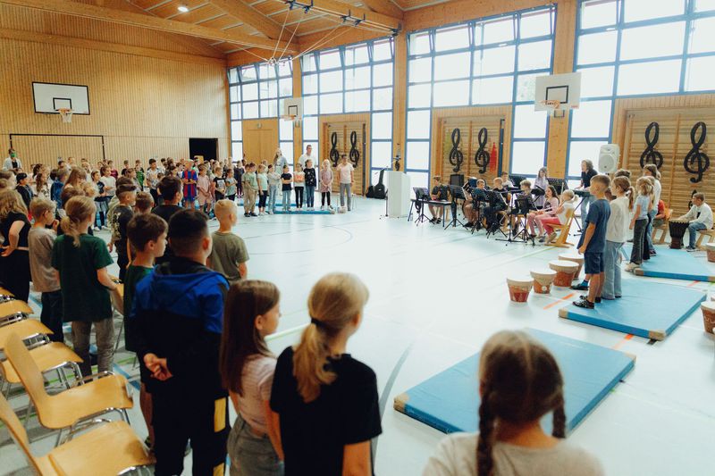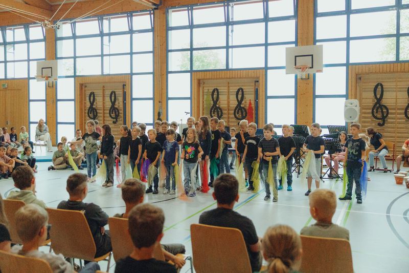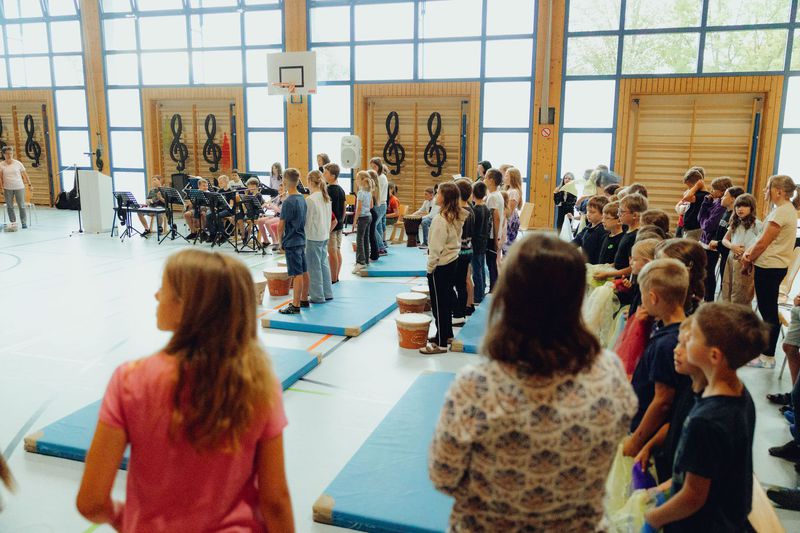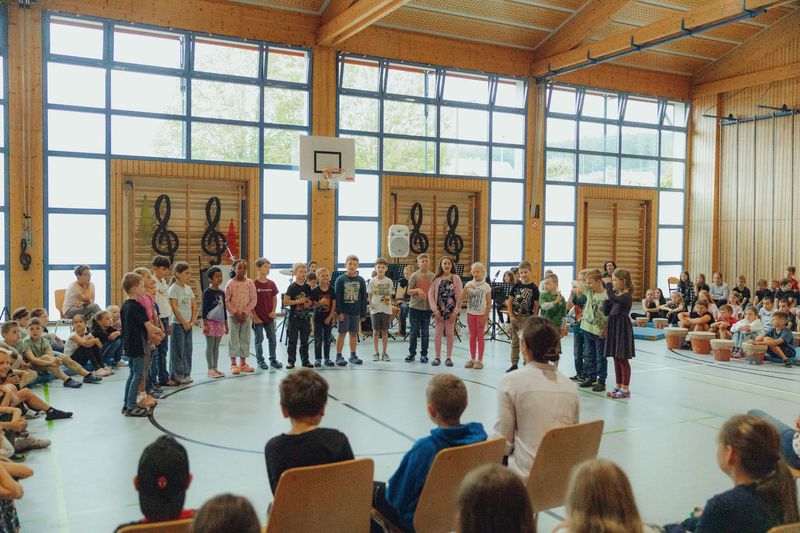 Nachdem alle Klassen mit einer Polonaise aus ihren Klassenzimmern abgeholt wurden, wurde es in der Turnhalle bunt.