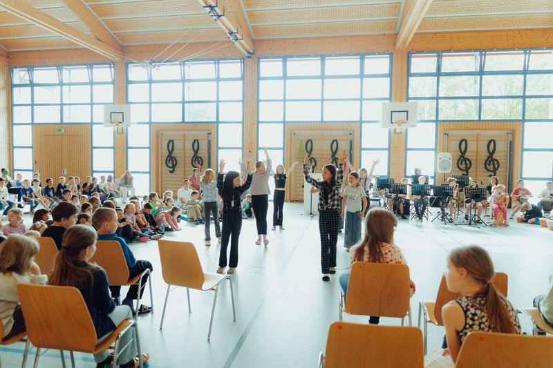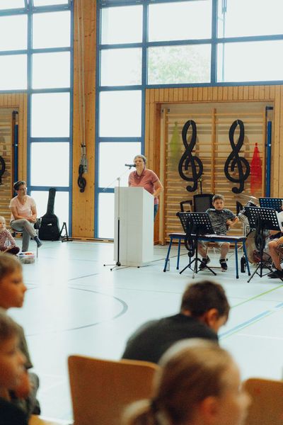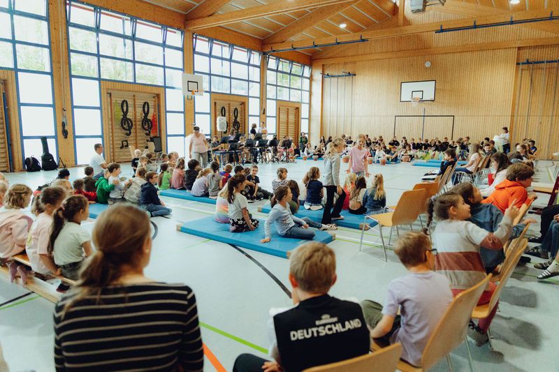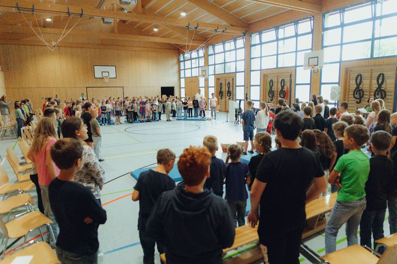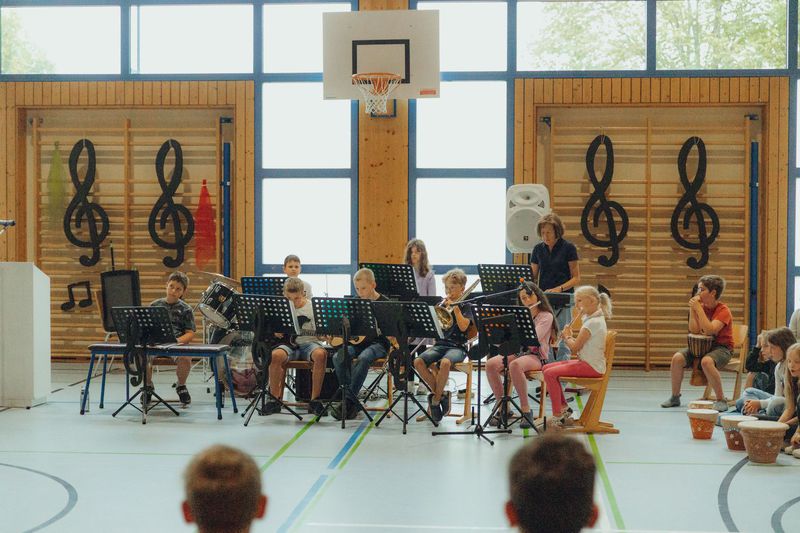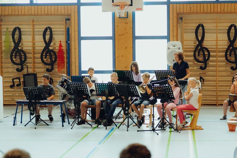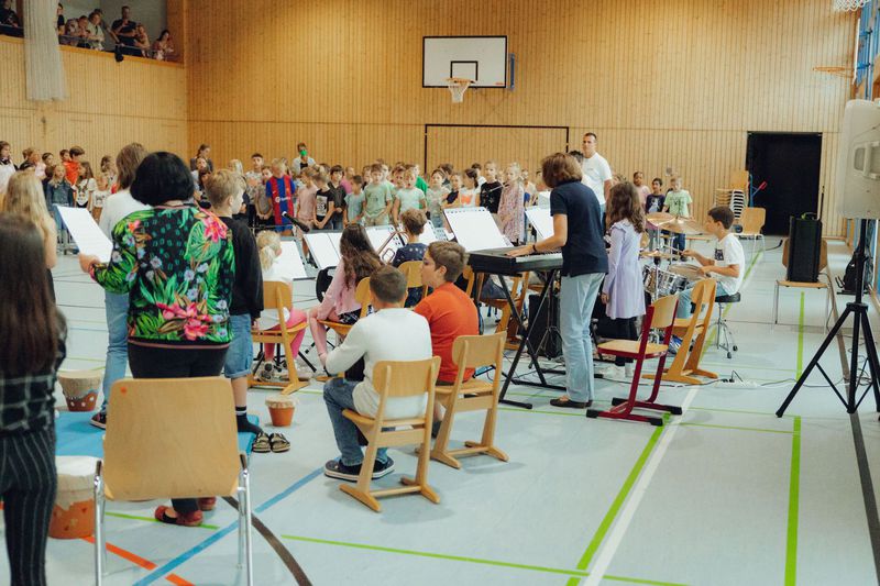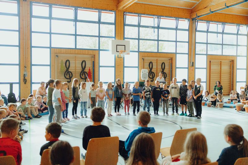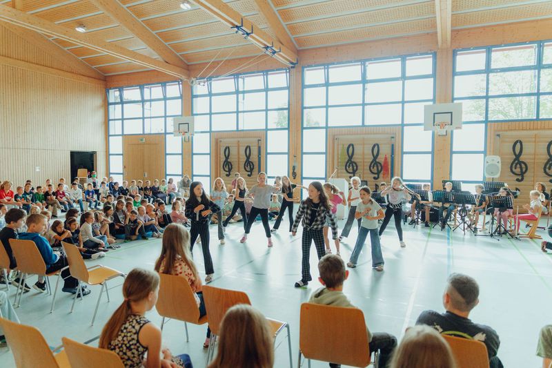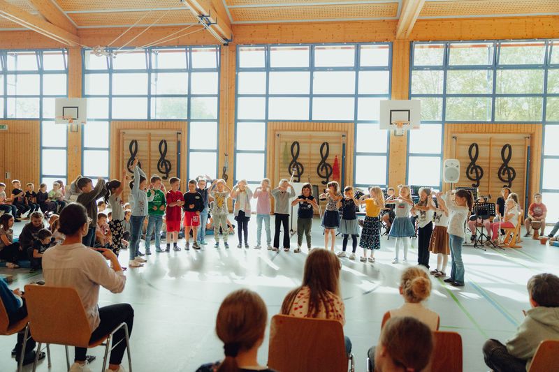 Nachdem alle Klassen mit einer Polonaise aus ihren Klassenzimmern abgeholt wurden, wurde es in der Turnhalle bunt.