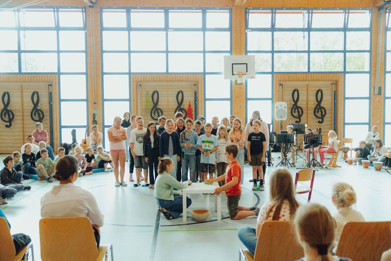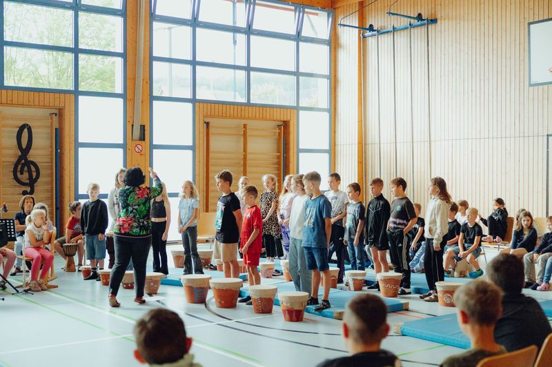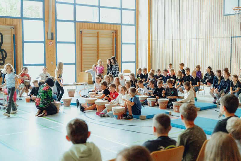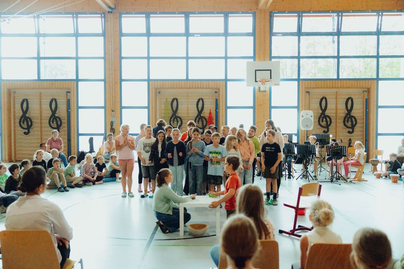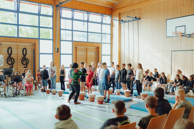 Auch die Bewegung und Ernährung wurde miteinbezogen. Der Tag begann mit einer Morgengymnastik, einem Tanz und einem Gemeinschaftslied, welches die ganze Schule am Ende der Projektwoche am Schulfest aufführte. Von den ortsansässigen Geschäften bekam die Schule Obst und Gemüse gespendet, das eine Gruppe am Morgen immer für alle Kinder für die Pause zubereitete.