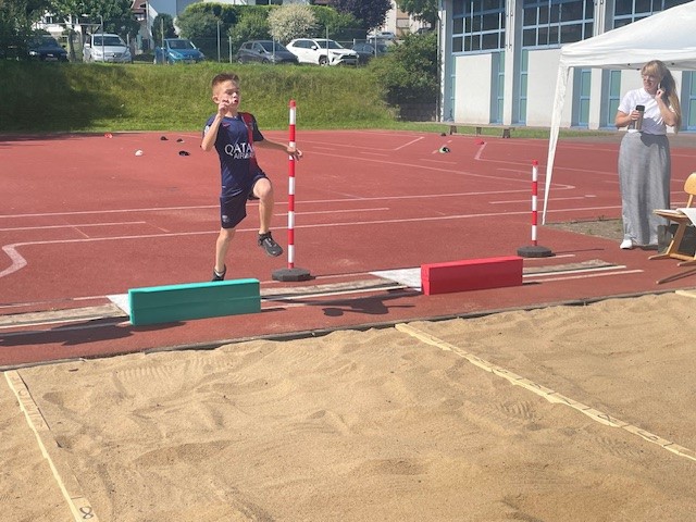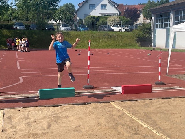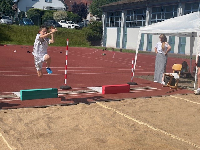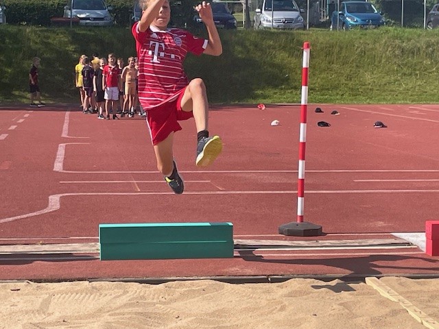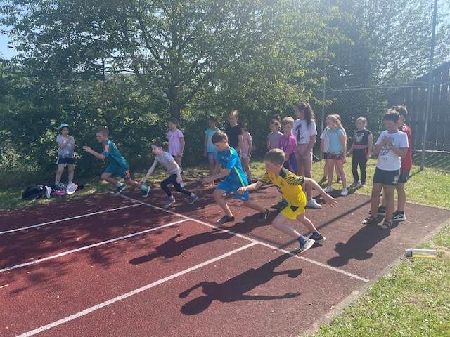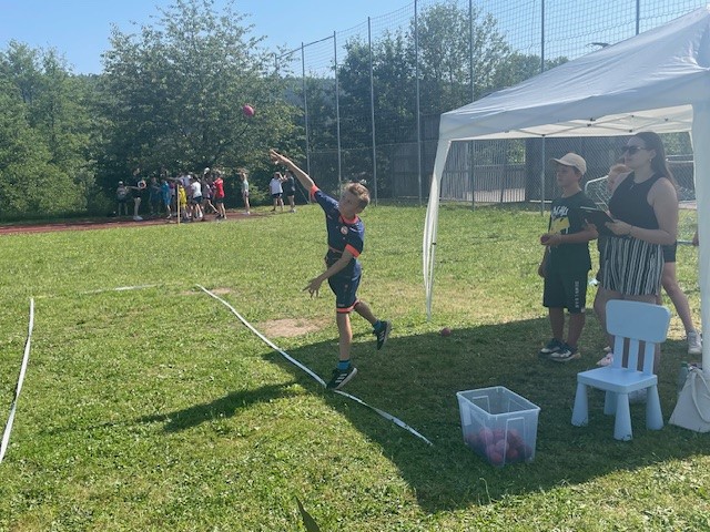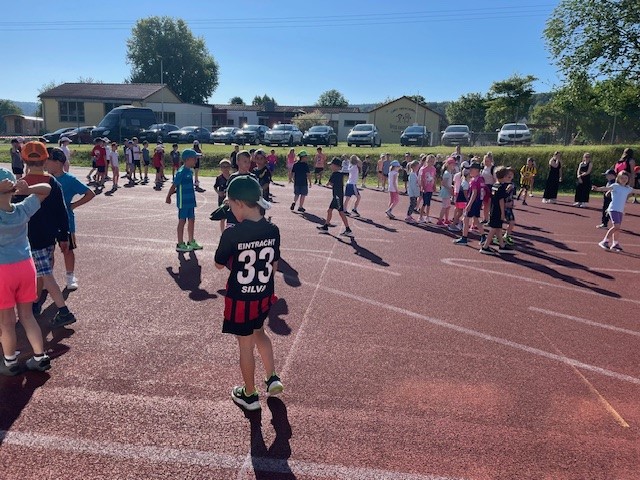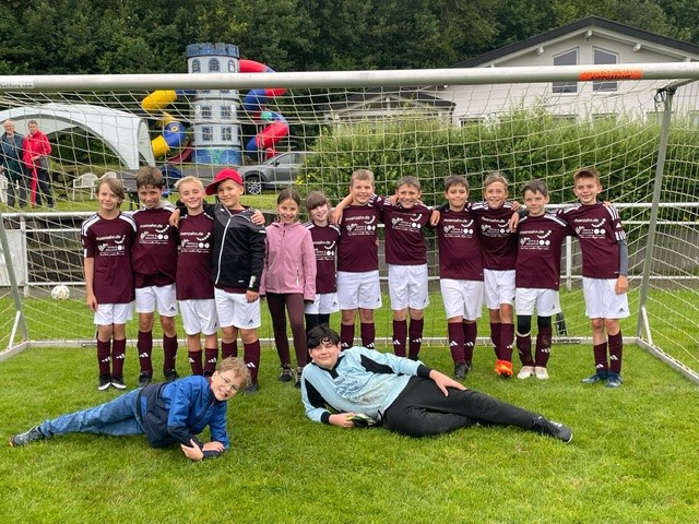 Die Endrunde des Kreisfullballturniers in Wollbach fand am 04.07.2024 bei äußerst widrigen Wetterbedingungen statt. Gespielt wurde in zwei Gruppen mit je 4 Teams. Diese meisterte unsere Mannschaft aus der Klasse 4b ungeschlagen und souverän. In einem nervenaufreibenden Spiel um Platz 1 nach Verlängerung und "Elfmeterschießen", blieb das Glück leider nicht auf unserer Seite. Die Sinnberggrundschule aus Bad Kissingen wurde 1. und wir belegten den 2. Platz. Unsere Kicker können stolz auf diese Leistung sein.